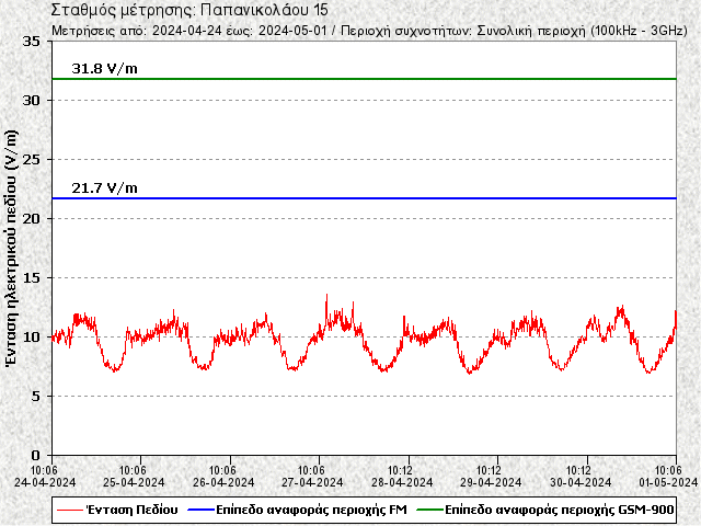| Διάγραμμα της έντασης του ηλεκτρικού πεδίου την τελευταία εβδομάδα | |||||